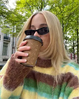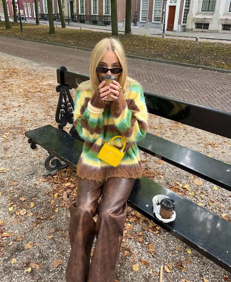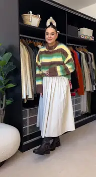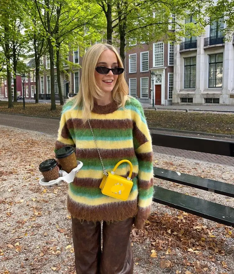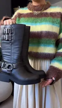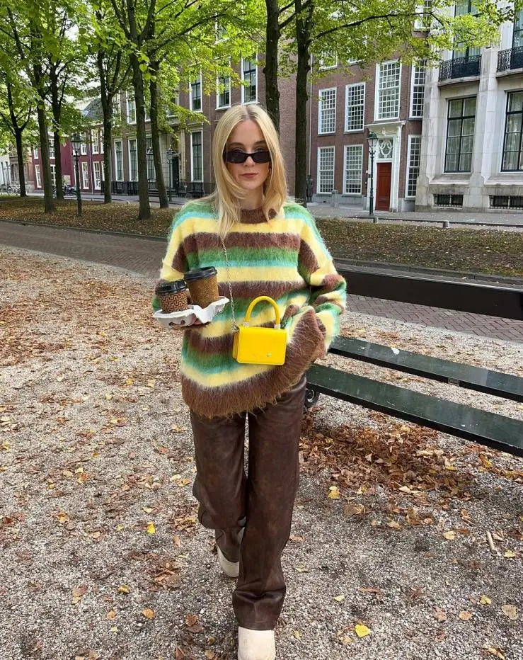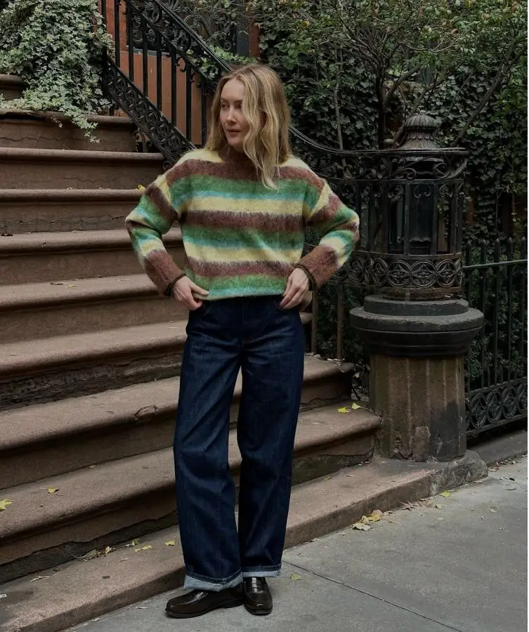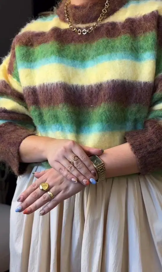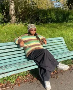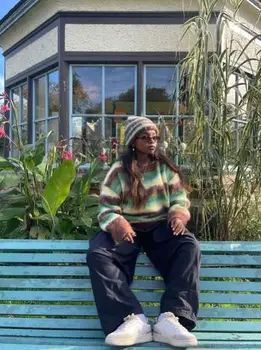 Mohair Striped Elegant Sweater Women Oversize Long Sleeve Contrast Color O-neck Pullover Female Jumper 2024 Autumn Colorful Tops